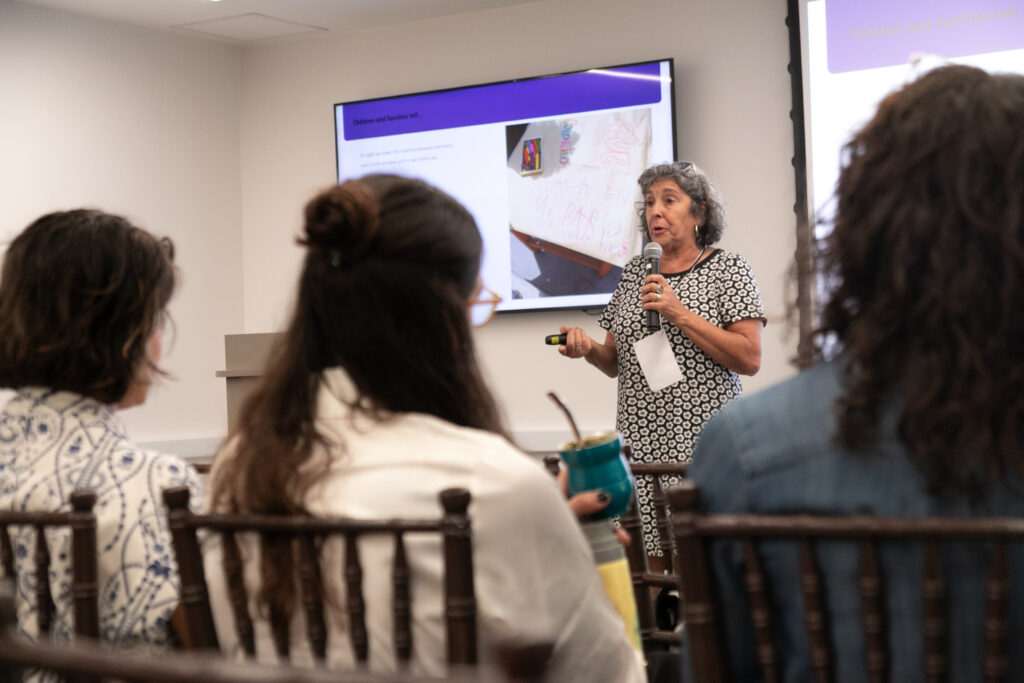 Uruguayan social activist Elba Núñez continued the discussion by focusing on protecting children and families living in high-risk areas. She drew attention to the rise of school shootings in Latin America and to the impact of contemporary wars on childhood, arguing that schools must be prepared for extreme situations. Núñez discussed the proposal of the “blue room,” a protective space built in a school-bunker format to shelter children and families during emergencies—a project currently under evaluation by the Uruguayan government.