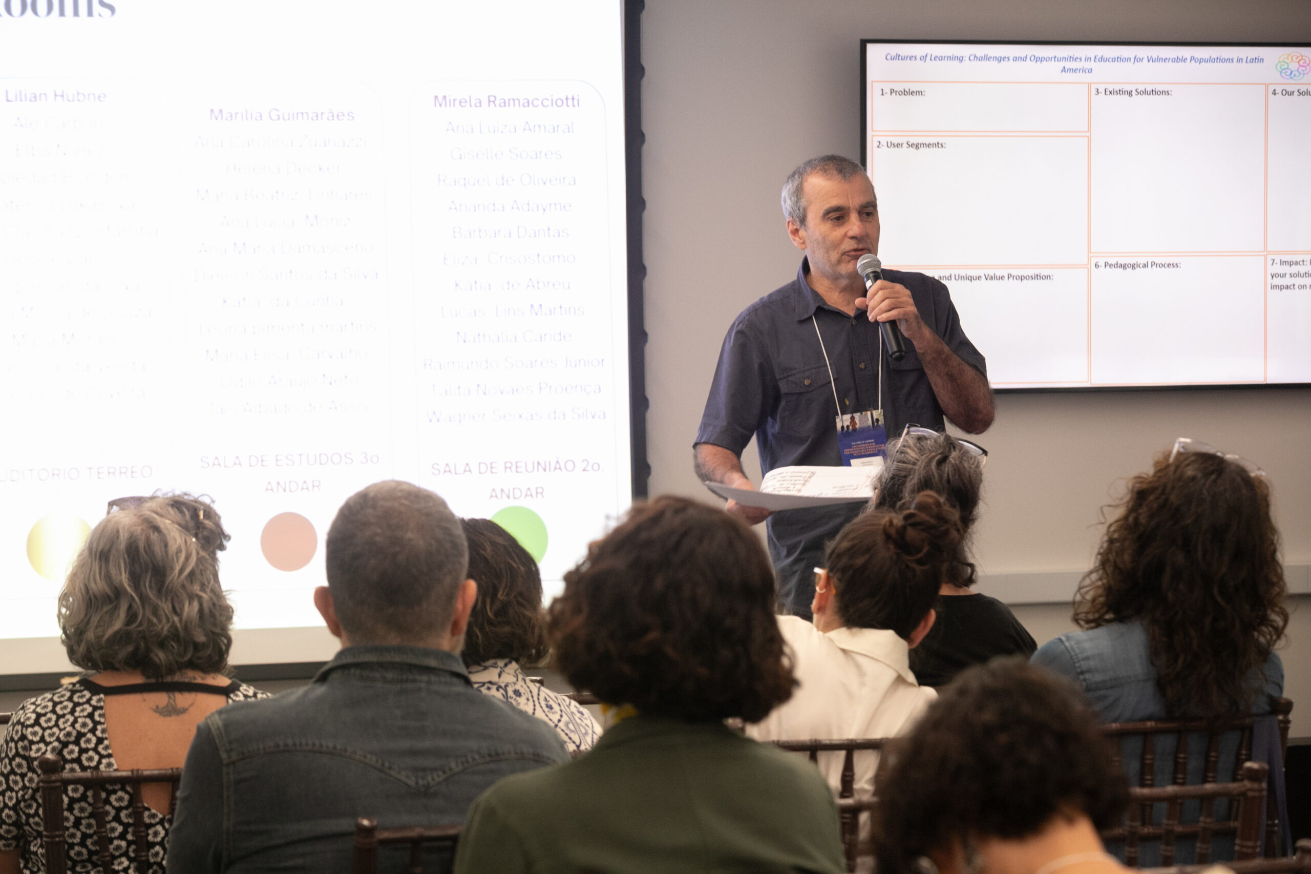 After the panels, participants and speakers took part in a hands-on workshop to transform the day’s insights into concrete proposals. Divided into five thematic groups, each mediated by a specialist, the participants worked on solutions for urgent challenges faced by schools in Brazil and other Latin American countries.